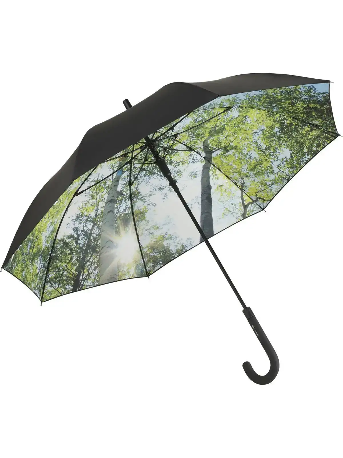 100% poliestere pongee. Ombrello con funzione di apertura automatica, con sistema Windproof, stecche in fibra di vetro flessibili, stampato nella parte interna. Diametro: 105 cm. Lunghezza da chiuso 87 cm. 8 pannelli.