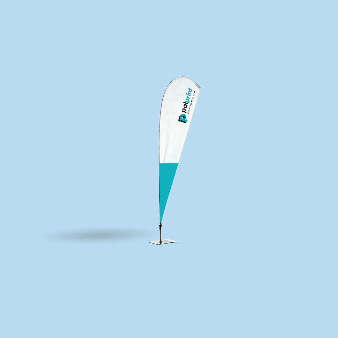 Bandiere a goccia per interni, sistema e stampa sul fronte