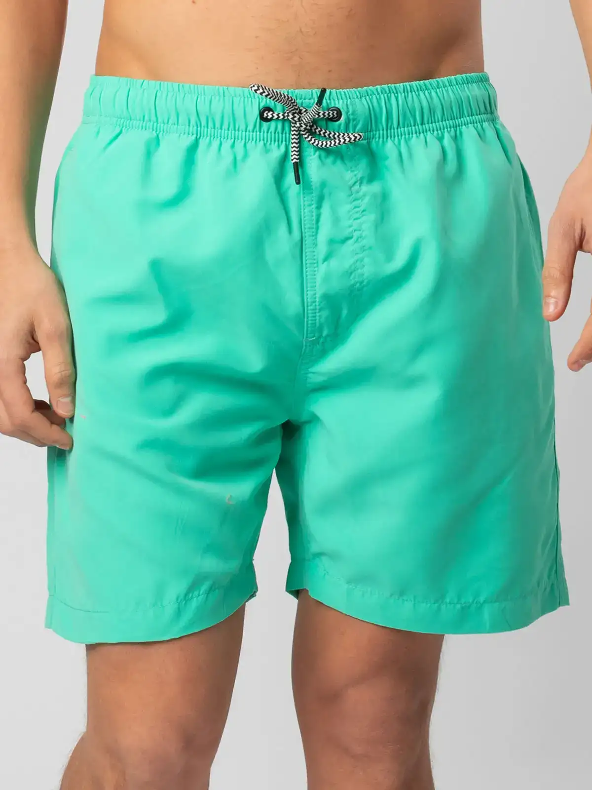 100% poliestere riciclato. Costume da bagno uomo in tessuto riciclato, ad asciugatura rapida. Slip interno a rete tono su tono. 2 tasche laterali, tasca sul retro a filetto con chiusura in velcro, cordoncino in contrasto con punte in metallo, occhielli in metallo. Lavabile a 30°C. Etichetta strappabile.