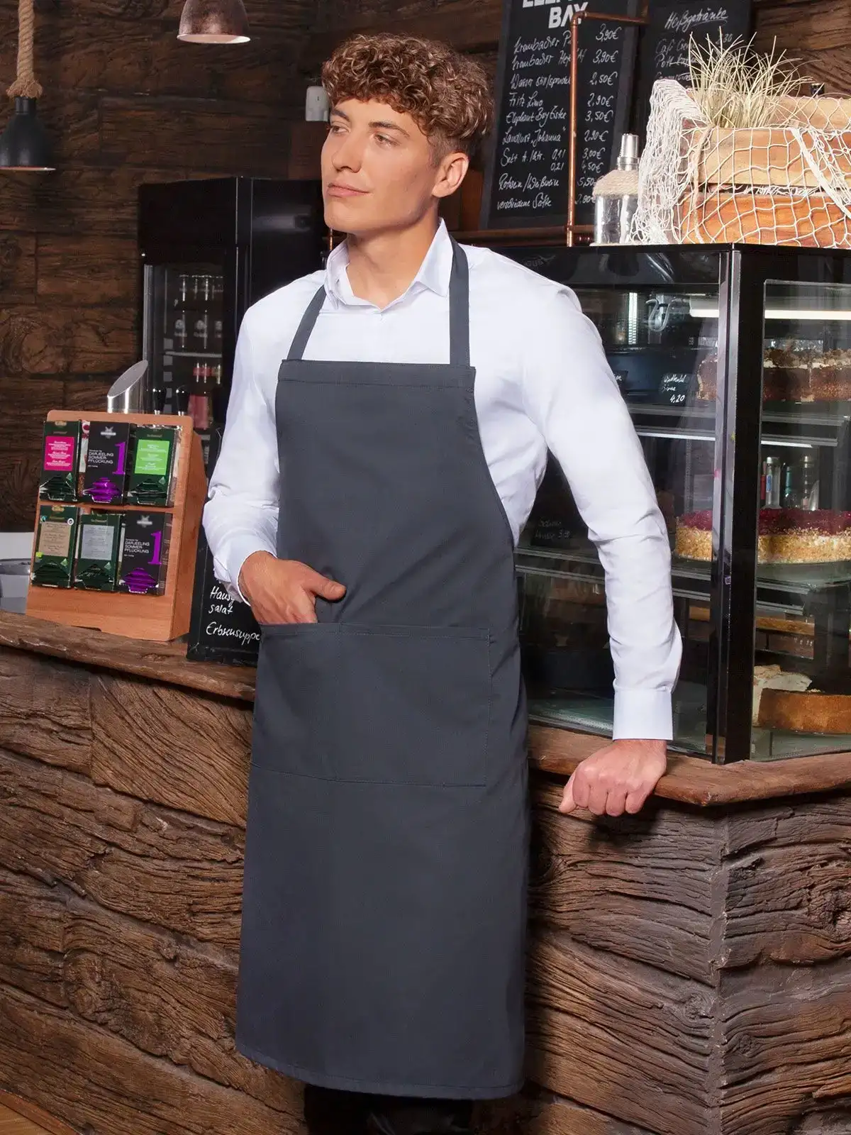 65% poliestere, 35% cotone. "Grembiule Denmark , cotone twill, 215 g/m² - tessuto rifinito, irrestringibile, lavabile, pratico - grembiule con pettorina con cinta dello stesso tessuto del grembiule, con cucitura rinforzata - collo orizzontale 60 cm - tasca cucite con 2 pieghe, 40 x 20 cm - adatto per lavaggi industriali - disponibile in 30 colori - ""Mix and Match"".