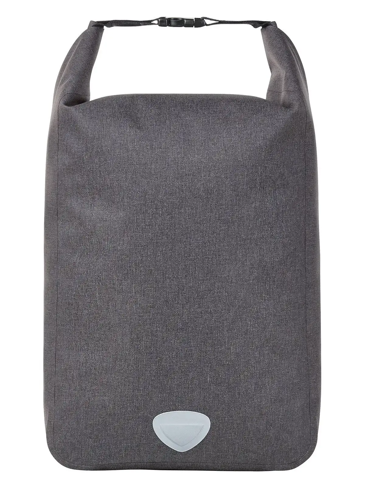 100% Poliestere 600D. Borsa da bicicletta con ampio scomparto principale, grande tasca interna con chiusura lampo, chiusura roll-top. Cuciture saldate per una protezione ottimale da pioggia e umidità, protezione di fondo e bordi. Supporto regolabile per il fissaggio al portapacchi della bicicletta, con chiusura a torsione e chiusura con velcro sul retro della borsa per un fissaggio ulteriore, applicazione riflettente decorativa, con manico.