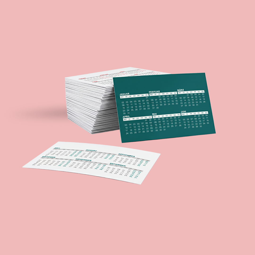 I nostri mini calendari, grandi quanto una tessera del bancomat, sono l'omaggio ideale da regalare ai tuoi clienti soprattutto a capodanno! Oltre al calendario offrono anche spazio per riportare i tuoi dati di contatto. Puoi scegliere fra carta patinata, tesserino di plastica o sticker magnetico.vari materiali in carta con finiture opzionali: 8,5 x 5,5 cmtesserino di plastica in PVC da 600 µm: 8,6 x 5,4 cmsticker magnetico, ideali ad es. per il frigorifero: 8,6 x 5,4 cmcome planner annuale nel pratico formato tessera bancomattesserino di carta e di plastica stampabile su ambo i latisticker magnetico (spessore 0,8 mm) con stampa solo fronte Informazioni obbligatorie:Produttore / ResponsabileQui trovi i nostri:Modelli di layout per calendari mini