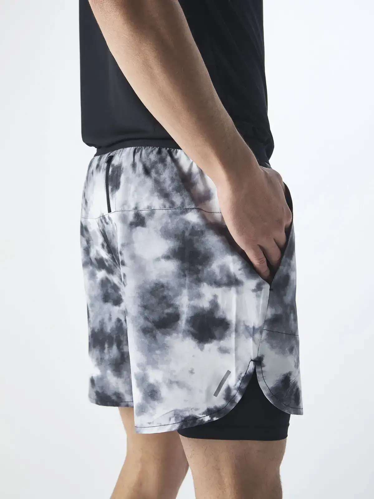 100% poliestere. Pantaloncini genderless con elastico in vita con coulisse, slip integrato in poliestere 88% ed elastane 12%, due tasche frontali e taschino posteriore con zip, elemento riflettente.