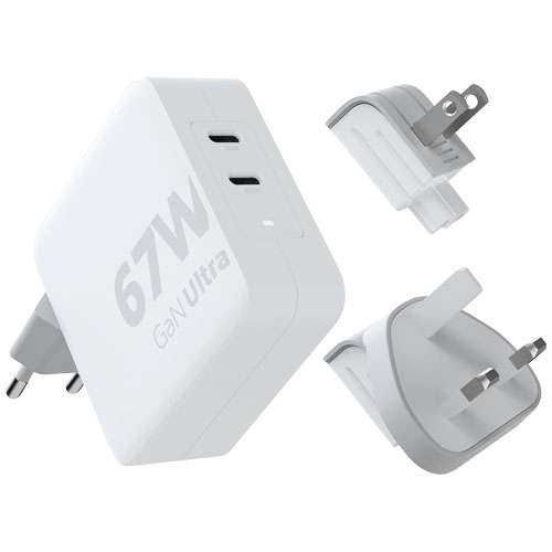 Il caricabatterie da viaggio da 67 W GaN Ultra è stato progettato per essere più compatto e potente che mai. Grazie al suo design compatto e alla funzionalità a doppia porta, questo caricabatterie da viaggio è perfetto per gli spostamenti, l'ufficio o la casa. Con le opzioni di spina CA UE, UK e USA incluse e il cavo USB-C PD da 100 W (2 metri), avrete tutto ciò che vi serve per ricaricare i dispositivi in tutto il mondo!