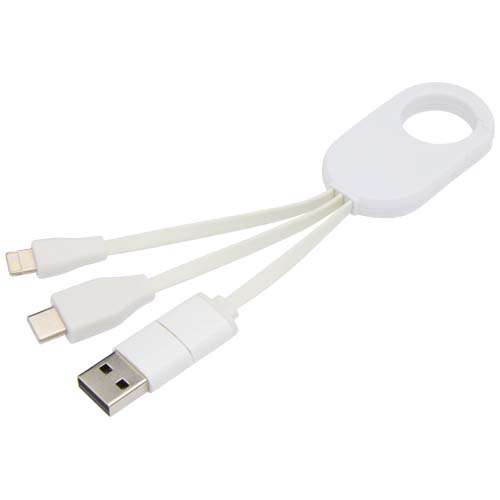 Il cavo di ricarica Troop 4-in-1 realizzato in plastica riciclata, presenta connettori di ingresso USB-A e Tipo-C abbinati a connettori di uscita combinata di Tipe-C e Lightning/Micro USB, che consentono di ricaricare la maggior parte di smartphone, fotocamere, power bank e auricolari. Il moschettone incorporato consente di agganciarlo facilmente a una borsa o a un portachiavi, per essere sempre a portata di mano per alimentare i dispositivi ovunque.