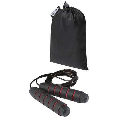 Corda per saltare professionale per adulti con impugnature ergonomiche in morbida gommapiuma, per una presa sicura e confortevole durante gli allenamenti. La lunghezza della corda è di 310 cm ed è adatta per adulti alti fino a 195 cm. La lunghezza della corda è regolabile, dispone inoltre di un cuscinetto a sfera integrato di elevata qualità caratterizzato da una rotazione di 360° per garantire che la corda ruoti facilmente evitando i grovigli. Fornita in una custodia da 21 x 14 cm realizzata in plastica PET riciclata, la cui superficie è ideale per stampare un logo.