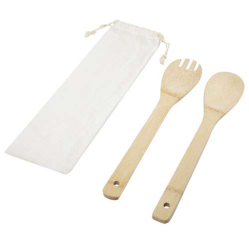 Set composto da cucchiaio e forchetta per insalata in bambù, pratico da utilizzare tutti i giorni per il tuo pranzo in famiglia. Il bambù utilizzato è ottenuto e prodotto in base a standard ecosostenibili.