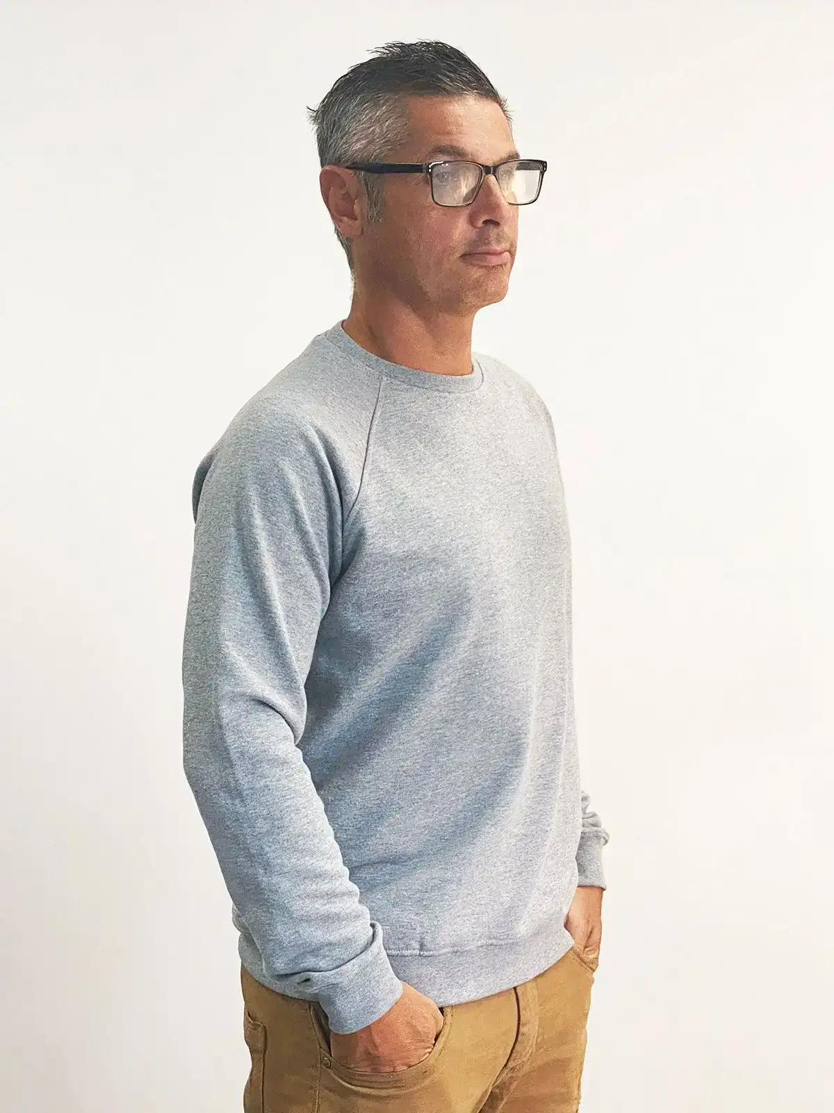 90% cotone, 10% poliestere. Felpa girocollo. French Terry. Manica raglan, fashion fit, struttura tubolare, collo con etichetta OPENSPACE e etichetta taglia, etichetta composizione, taglia e made in sul fianco. Non felpata internamente.