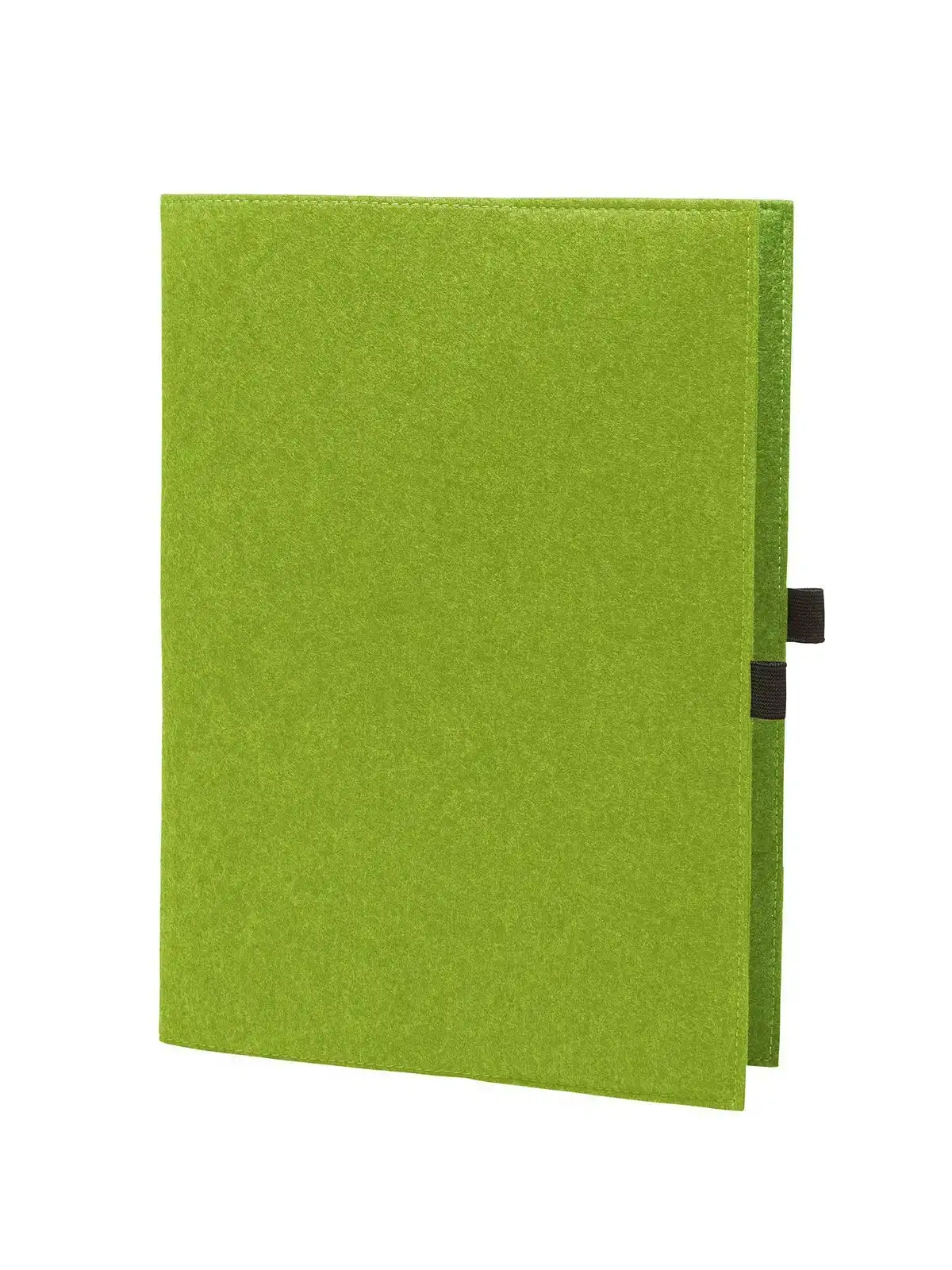 100% feltro. Custodia ideale per quaderni formato A4, portapenna come chiusura. Dimensioni: 24 x 32 x 1 cm, area personalizzabile: 10 x 28 cm sul fronte.