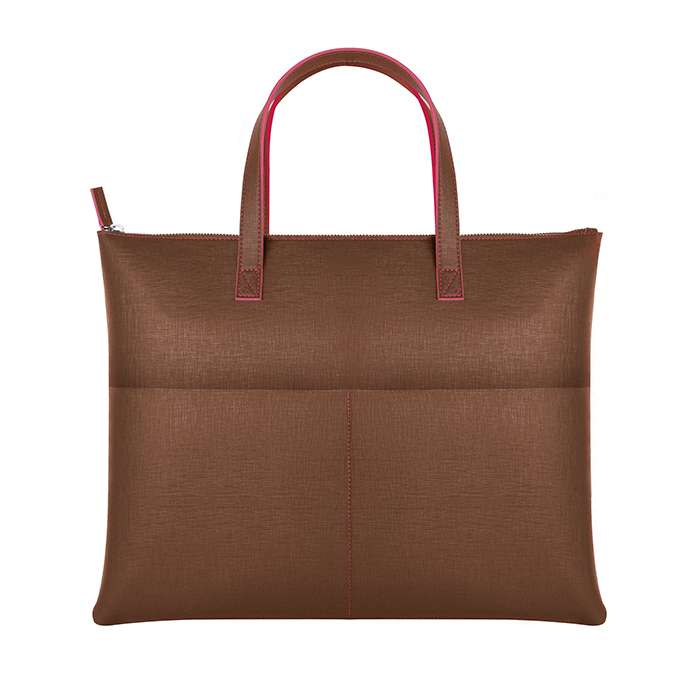borsa shopping/portadocumenti bicolore ; chiusura con zip ; manici cuciti ; 2 tasche interne ; 2 tasche esterne ; rifiniture cucite ; shopper Cavallari su richiesta: CA820 ; tecnica di stampa consigliata: serigrafica - incisione - a caldo