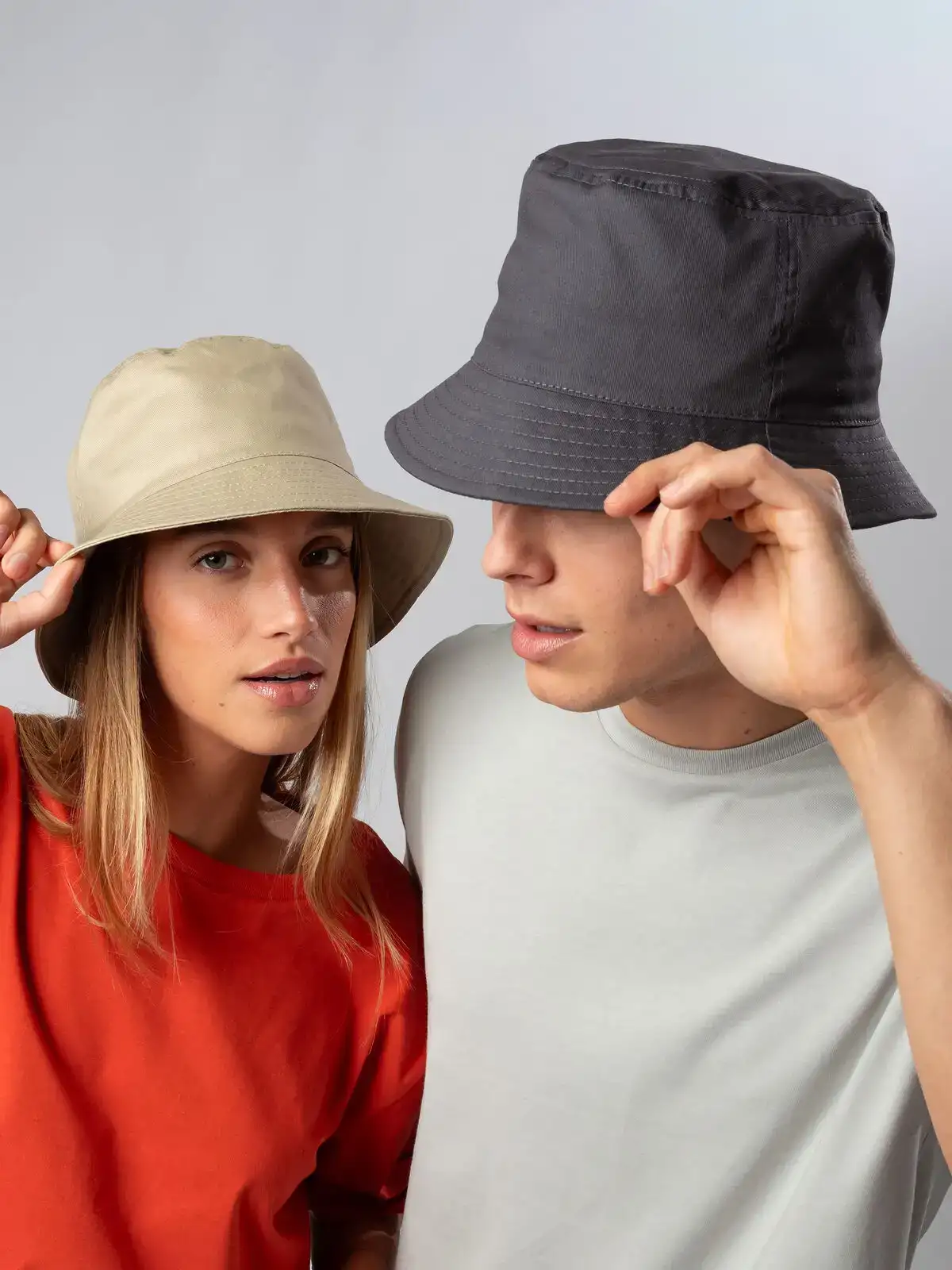 100% cotone twill. Cappello modello pescatore realizzato in tessuto morbido per un look casual e confortevole. Privo di occhielli per un design essenziale, è dotato di una fascia parasudore in 100% cotone che garantisce freschezza e comfort per tutto il giorno. 8 cuciture a righe sulla falda per un tocco di stile e robustezza. Disponibile in taglia unica. Etichetta removibile.