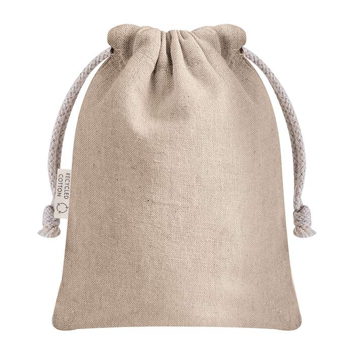 sacchetto ; doppia corda di chiusura ; rifiniture cucite ; tecnica di stampa consigliata: serigrafica - transfer - digitale ; 140 GR