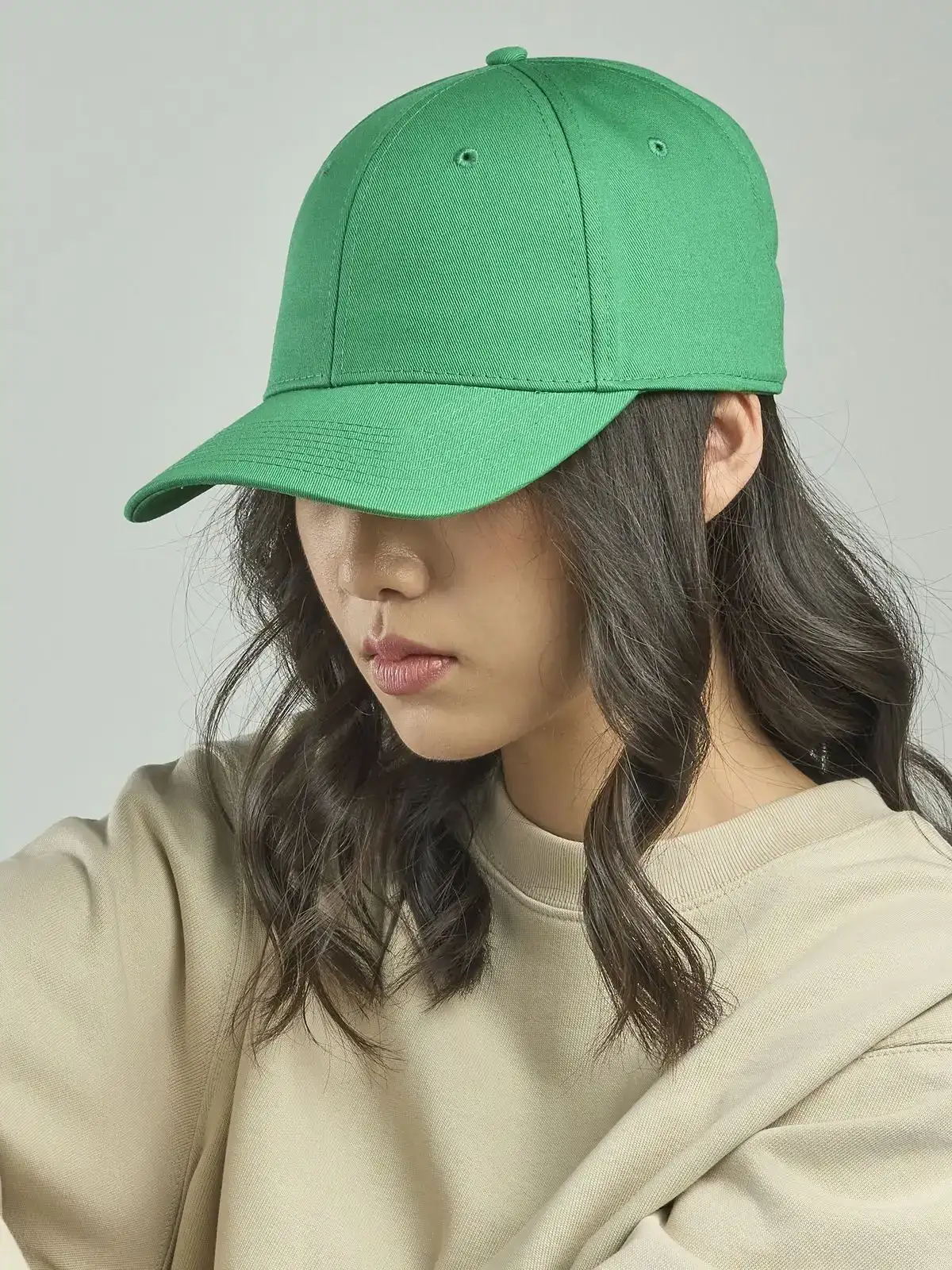 100% cotone. Cappellino a 6 pannelli con visiera ricurva, occhielli ricamati, 8 cuciture sulla visiera, etichetta strappabile, taglia unica.
