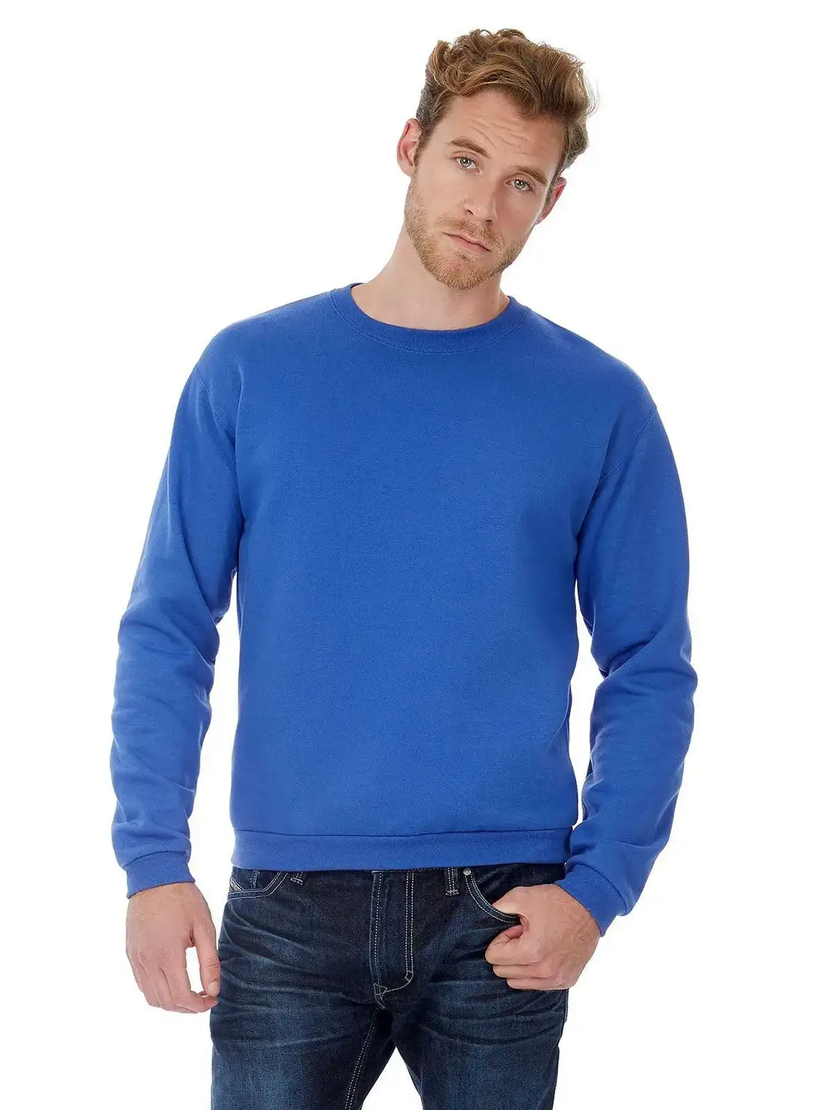 50% cotone, 50% poliestere. Felpa unisex con maniche set-in. Collo, polsini e orlo inferiore in costina 1x1 in elastan. Struttura con cuciture laterali, cuciture rinforzate su braccia e collo, felpata internamente, nessuna etichetta.