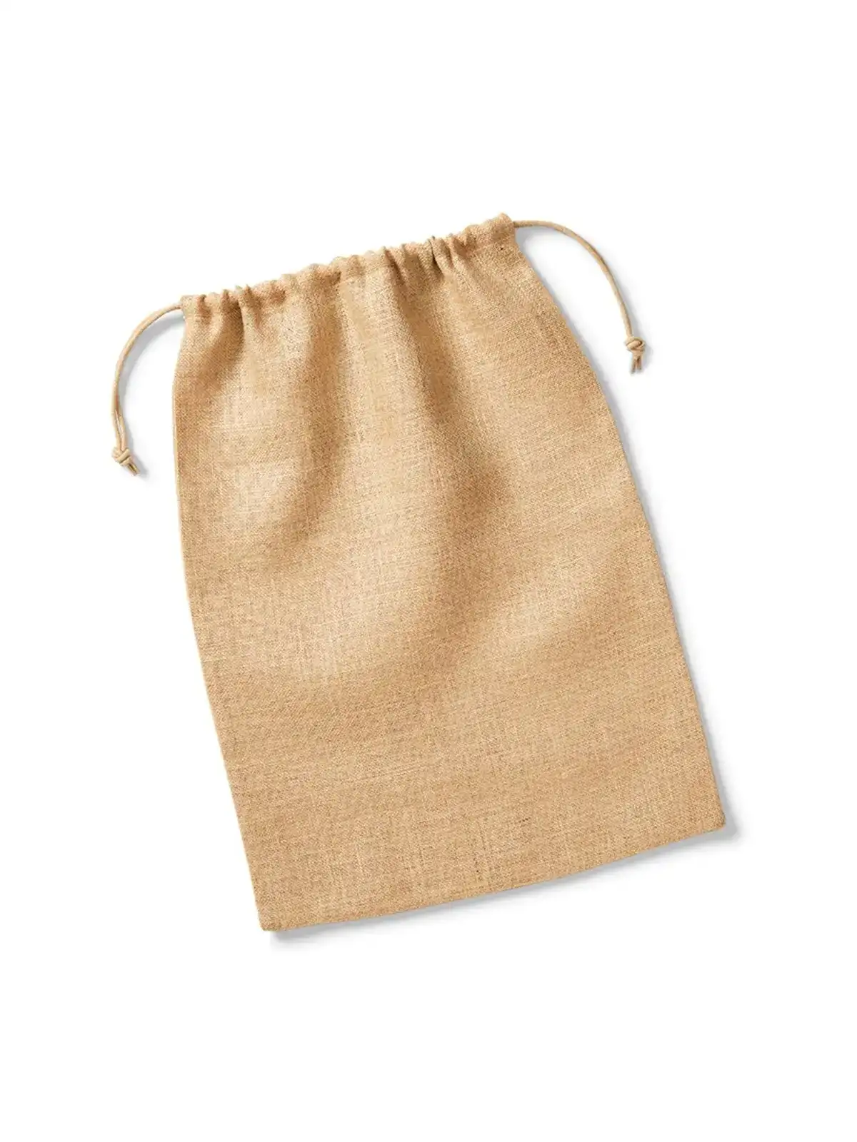 100% Juta. Sacca con chiusura a coulisse con doppio laccio. Etichetta removibile. Dimensioni: XXS: 10x15 cm, cap. 0,25 lt. - XS: 14x20 cm, cap. 1 lt. - S: 25x30 cm, cap. 3 lt. - M: 30x45 cm, cap. 8 lt. - L: 40x55 cm, cap. 15 lt. - XL: 55x75 cm, cap. 40 lt.