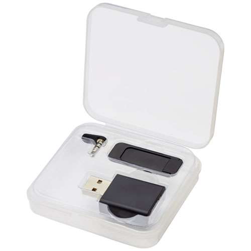 Kit per la privacy digitale che include un blocca dati USB, un blocco per webcam e un blocco per jack audio. La protezione dati USB impedisce lo scambio accidentale di dati quando si collega un dispositivo mobile a un computer o a una stazione di ricarica pubblica. Questo articolo bloccherà qualsiasi trasferimento di dati durante la ricarica del dispositivo, impedendo il furto di dati o l'installazione di malware. Il blocco per webcam può essere messo davanti alla webcam del portatile per bloccare qualsiasi accesso indesiderato alla webcam. Il blocco per jack audio può essere inserito nella porta AUX del dispositivo per evitare che terzi ascoltino le conversazioni. Fornito in una scatola protettiva.