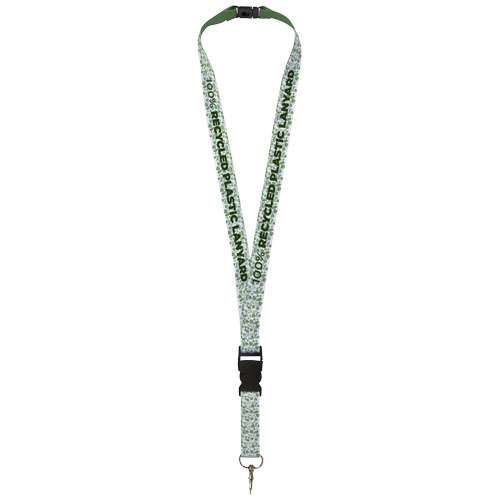 Lanyard Balta in PET riciclato, con stampa in sublimazione, gancio metallico, fibbia in plastica e sgancio di sicurezza per eliminare i rischi di soffocamento. Disponibile con stampa full color su uno o due lati. Per stampa su due lati è possibile scegliere tra sublimazione standard o piazzata (piazzata significa che la stampa sarà allineata su entrambi i lati). Può contenere badge, carte d'identità o chiavi. Disponibile in 4 diverse misure: 10, 15, 20 e 25 mm.