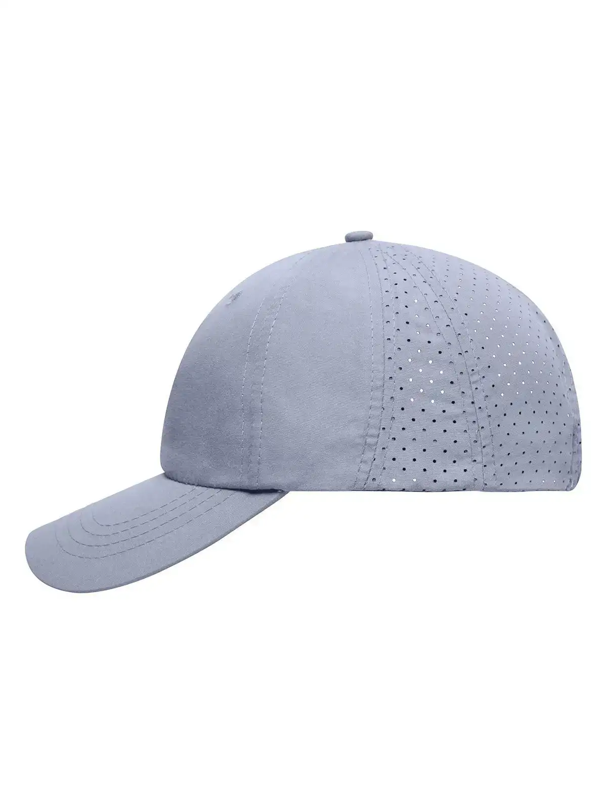 100% poliestere. Cappello sportivo a 8 pannelli in morbida microfibra Design estivo con laser cut di alta qualità, Accenti sui pannelli sul retro. 2 fori di aerazione imbastiti, 4 cuciture sulla visiera, Pannelli frontali leggermente laminati, Fascetta tergisudore in microfibra imbottita, Chiusura in velcro, Velcro, Sport, antivento e idrofugo.