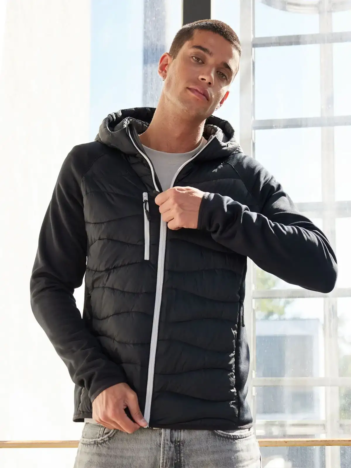 100% poliammide. Giacca sportiva da uomo in pile elasticizzato e trapuntato, imbottitura antifreddo sorona®AURA, zip a tutta lunghezza con protezione per il mento, tasca laterale e taschino con zip, 2 tasche interne, zip: YKK