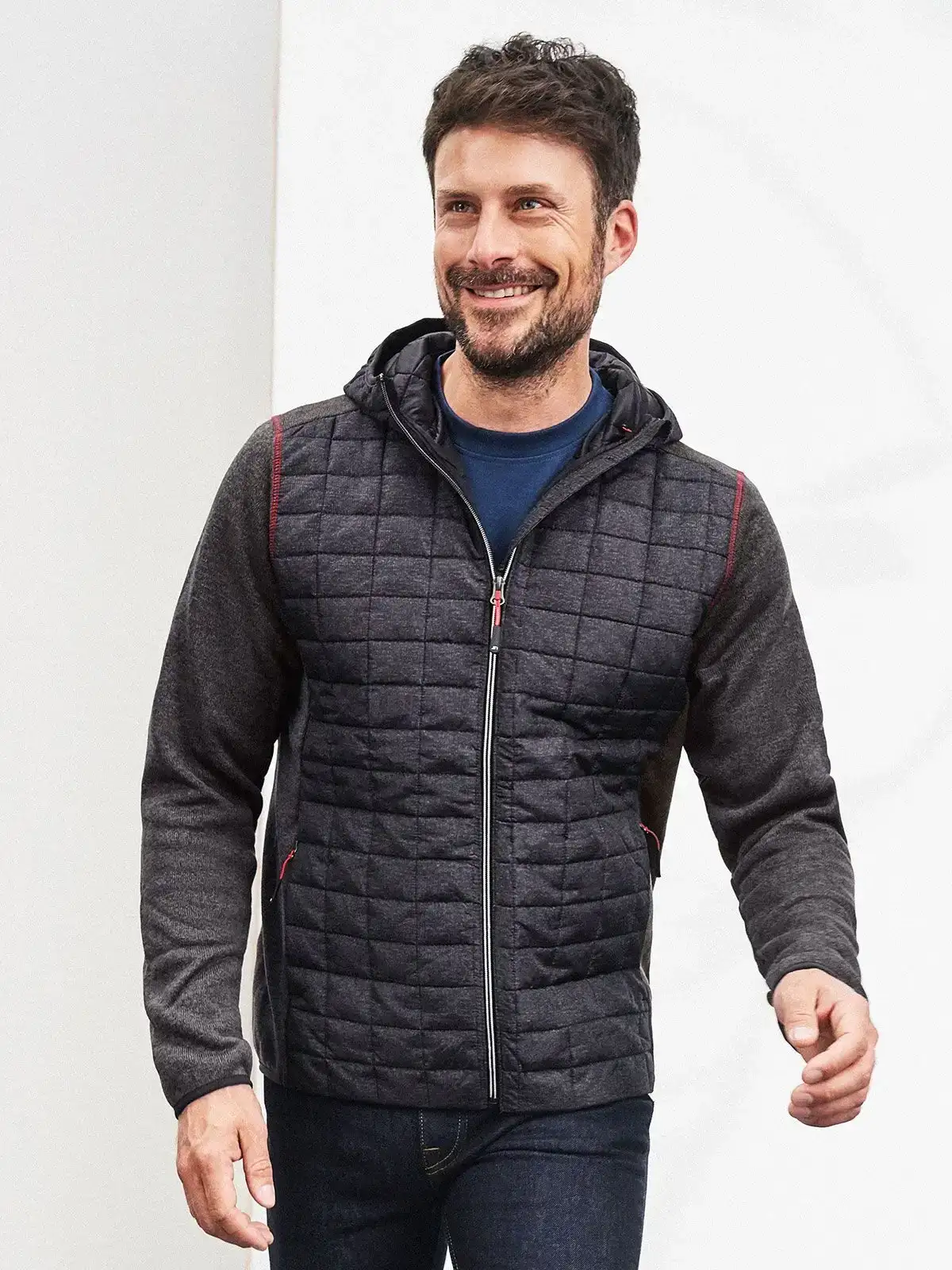 100% poliestere. Giacca lavorata a maglia, easy care, colore melange, tasche con cuciture piatte contrastanti. Cappuccio aggiustabile, cerniera nascosta, 2 tasche laterali con cerniera, 2 tasche interne.