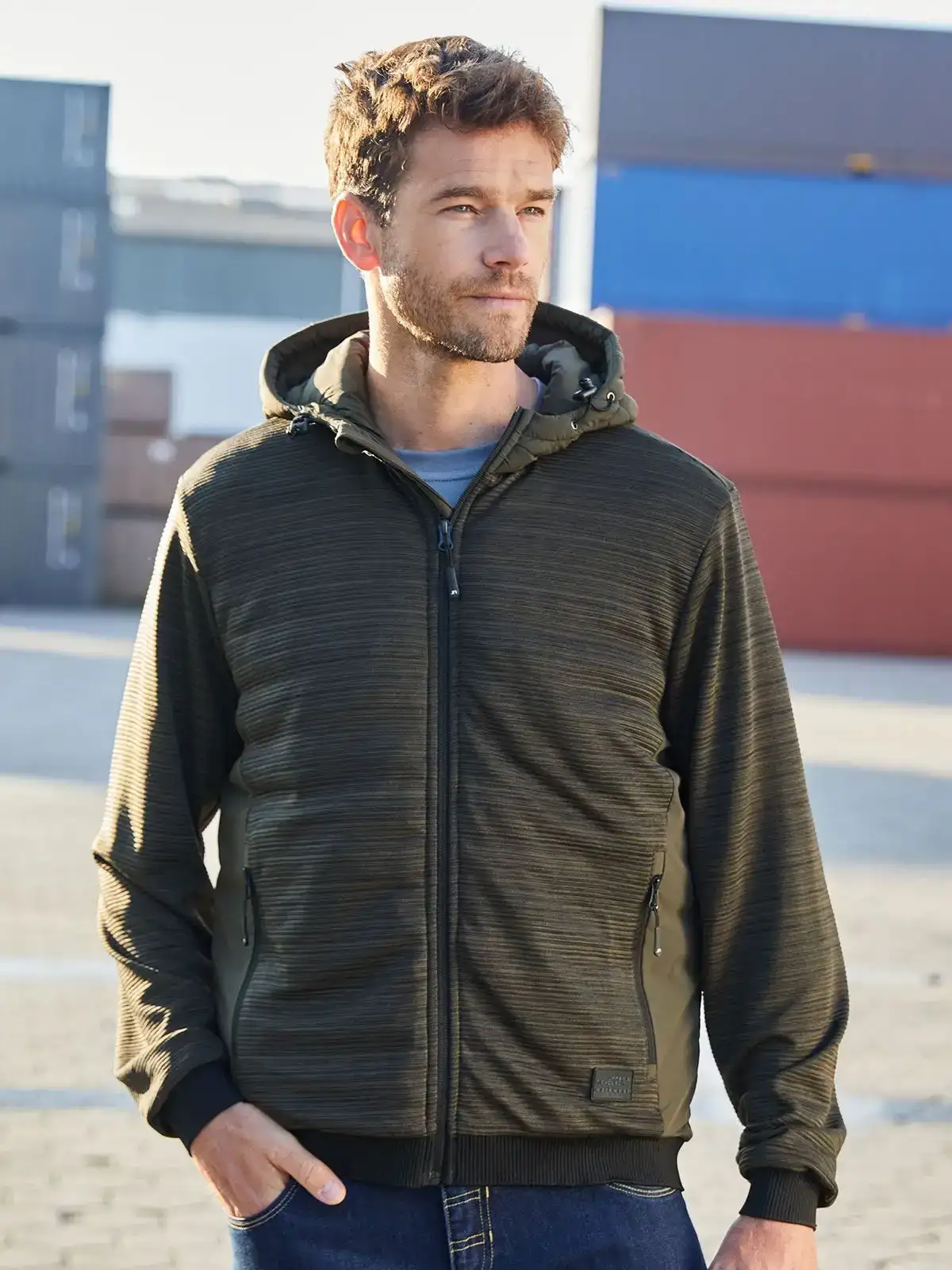 Tessuto esterno (300 g/m²): 57% poliestere, 42% poliammide, 1% elastan. Tessuto esterno: 57% poliestere, 42% poliammide, 1% elastan. Tessuto esterno 2: 93% poliammide, 7% elastan. Fodera: 93% poliammide, 7% elastan. Fodera 2: 89% poliestere, 11% elastan. Imbottitura: 100% poliestere. Giacca di pile easy-care con inserti elastici. Imbottitura DuPont™Sorona® nel cappuccio fronte e retro, polsini e orlo inferiore elastici. Cappuccio regolabile, zip frontale con protezione per il mento, 2 tasche laterali con zip, 1 tasca interna con chiusura in velcro, zip decorativa sul retro.