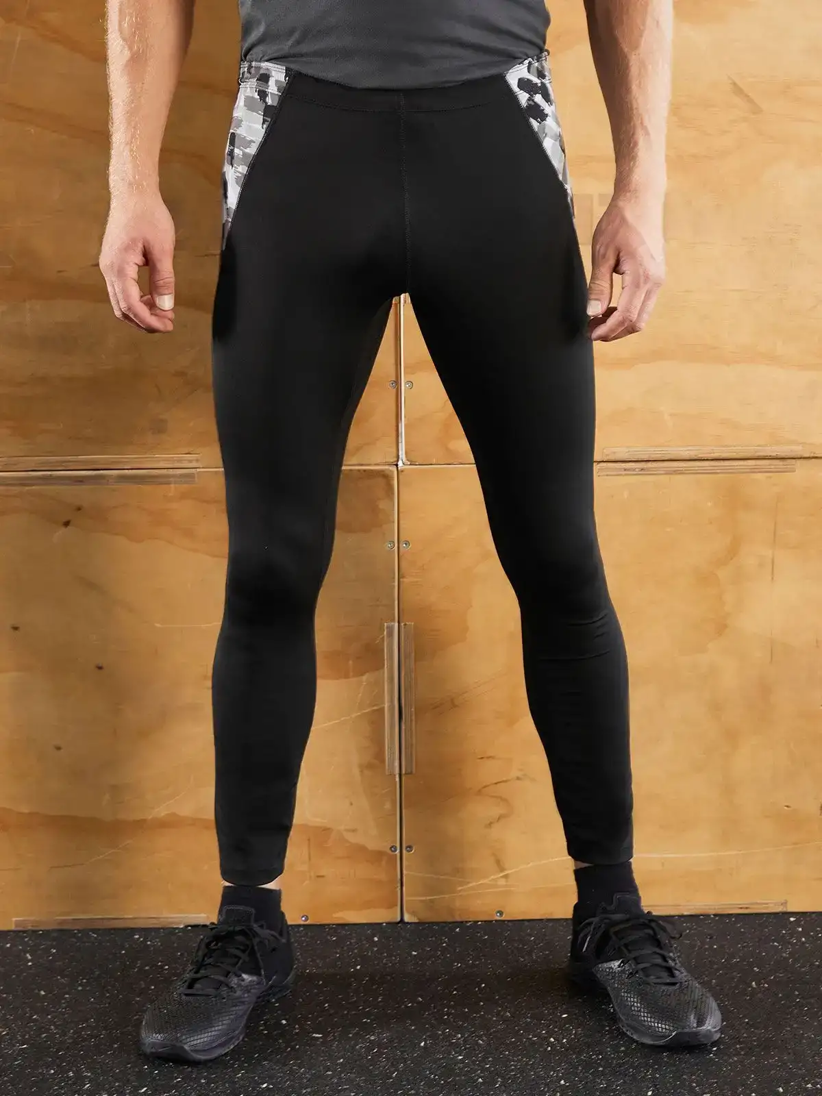 90% poliammide, 10% elastan. Leggings sportivi, tessuto morbido e elastico con elastan, stampa all-over, inserti a un colore sui lati, girovita elastico con cordino, taschino porta chiavi con zip.