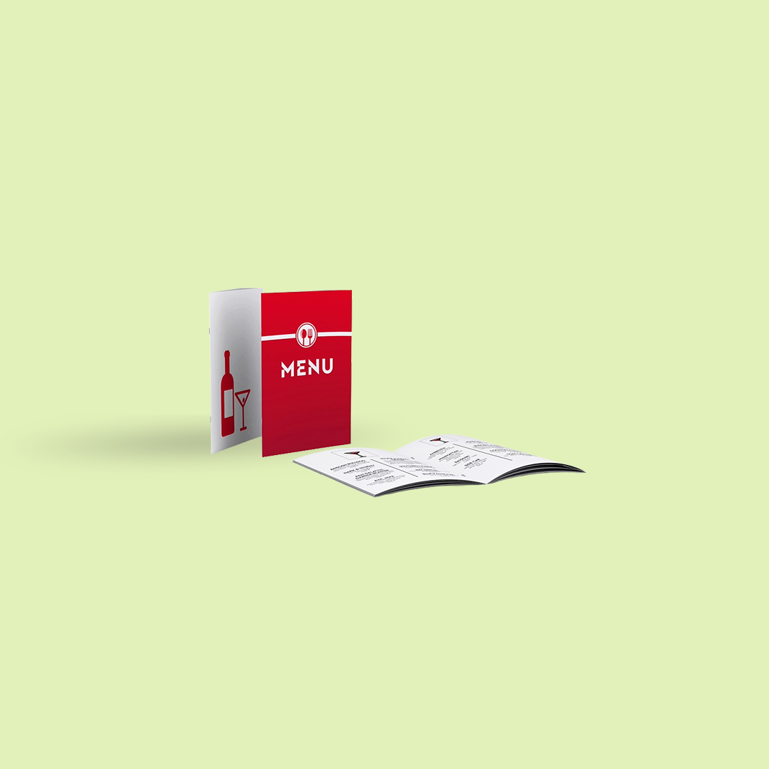Ti servono dei menù ma inizialmente solo in piccola quantità? Questi eleganti modelli a punti metallici possono essere personalizzati a partire da una singola copia. Personalizzali con il tuo logo o slogan! Perfetti anche come menù per bar e gelaterie.tante dimensioni diverse in formato orizzontale, verticale o quadratodiversi materiali8 – 32 facciatefissaggio con due punti metallicila copertina viene cordonatastampa digitaleda 1 esemplareNota bene: a seconda della configurazione con certificazione FSC® o PEFC. Ulteriori informazioni su FSC® o PEFC (Codici di licenza: FSC-C155353 / PEFC/04-31-3266).Informazioni obbligatorie:Produttore / Responsabile