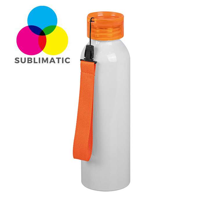 borraccia 650 ml ; tappo di sicurezza avvitabile ; rifinitura lucida ; nastro personalizzabile ; Tecnica di stampa consigliata: sublimatica