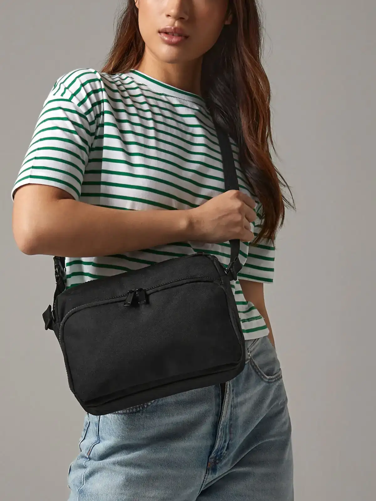 100% Poliestere 600D. Pochette con etichetta TearAway, tasca frontale con cerniera, divisione interna in rete, clip di fissaggio per l'integrazione nella serie Modulr™. La tracolla staccabile trasforma la borsa in marsupio. Si integra con i modelli BG240, BG241 e BG245. Dimensioni: 26x19x7cm. Capacità: 2 litri. Massima Area di stampa: 22x9cm.