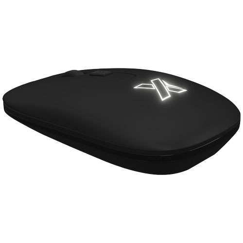 Mouse wireless ricaricabile (10,8 x 6,2 x 3 cm) in materiale sottoposto a trattamento antibatterico con logo luminoso. Il mouse può essere utilizzato fino a 8 ore con una sola ricarica. Fornito con un cavo di ricarica realizzato in PET riciclato. Fornito in una confezione regalo di colore nero (13,1 x 8,8 x 4,6 cm) con chiusura magnetica. Garanzia di 3 anni inclusa.