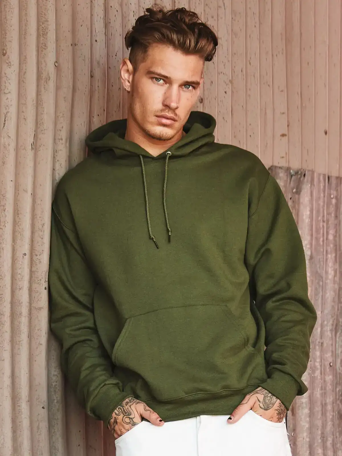 50% cotone 50% poliestere nublend. Felpa con cappuccio in tessuto NuBlend resistente ai pelucchi, realizzata con cotone coltivato negli Stati Uniti da fonti sostenibili, alta densità di punti per una tela di stampa liscia, cappuccio a 2 strati con occhielli, tasca frontale a marsupio, cordino abbinato con punta e annodato, cucitura a due aghi su collo, giromanica e girovita, polsini e girovita a costina. Etichetta strappabile.