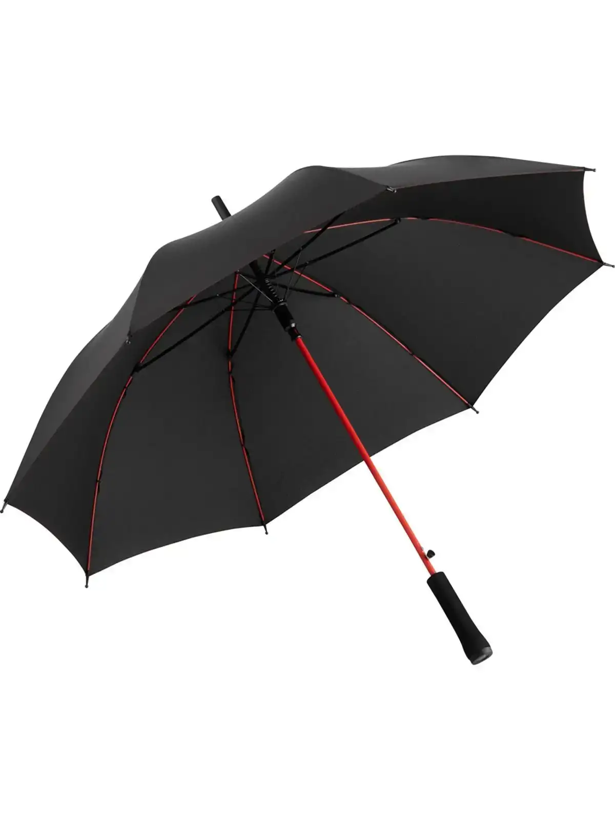 Ombrello bastone con funzione automatica per una apertura rapida. Struttura antivento per una maggiore flessibilità e stabilità in condizioni ventose. Stecche flessibili in fibra di vetro. Robusto fusto in acciaio con manicotto colorato, manicotto colorato, materiale in poliestere pongee certificato Standard 100 by OEKO TEX in plastica riciclata. Ecologico grazie al rivestimento waterSAVE, sottile decorazione del rivestimento grazie alle cuciture colorate, esclusiva impugnatura morbida con doppia possiblità di personalizzazione. Anche il pulsante di apertura ha la possibilità di essere personalizzato. Diametro: 105 cm, lunghezza da chiuso: 83 cm, 8 pannelli.
