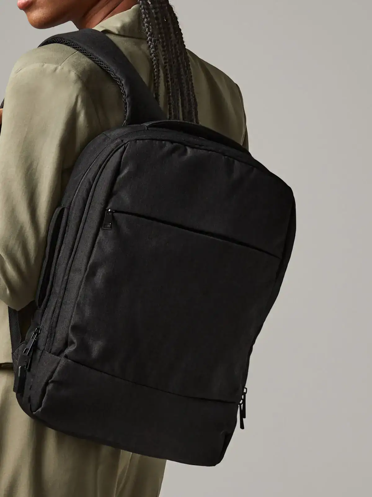 100% 650D poliestere. Zaino con scomparto imbottito per laptop fino a 15,6", tasca con cerniera nascosta nel pannello posteriore, porta di ricarica USB integrata, può essere portata a mano o in spalla, tasca frontale con zip. Dimensioni: 30x42x14 cm, capacità: 16.5 litri, area stampabile: 22x16 cm.