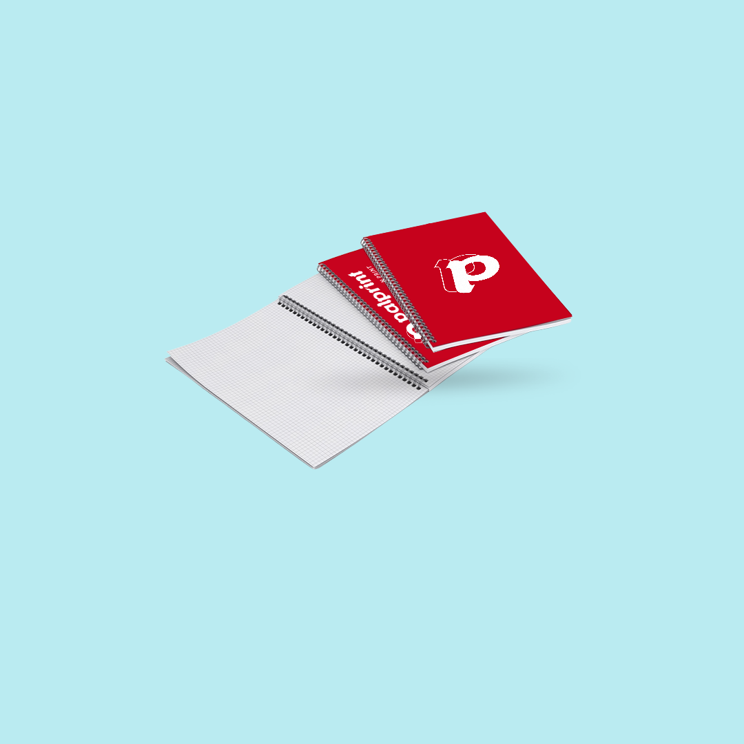 Sempre a portata di mano: i quaderni per appunti con copertina flessibile e spiralatura Wire-O sono perfetti da distribuire durante fiere, conferenze, corsi di formazione o da tenere a disposizione in ufficio. A te la scelta tra le numerose combinazioni di materiali disponibili... inoltre puoi personalizzare la copertina su fronte e retro con il tuo layout esclusivo.spiralatura Wire-O a sinistra: nero, argento o biancocopertina stampabile su fronte/retro a 4 coloristampa digitale fotorealisticaformati: DIN A4 o DIN A5diversi materiali disponibili8 – 100 pagine, interno a quadretti o a righea partire da 1 esemplare Nota: a seconda della configurazione con certificazione FSC® o PEFC Scopri di più su FSC® o PEFC (Codici di licenza: FSC-C155353 / PEFC/04-31-3266).