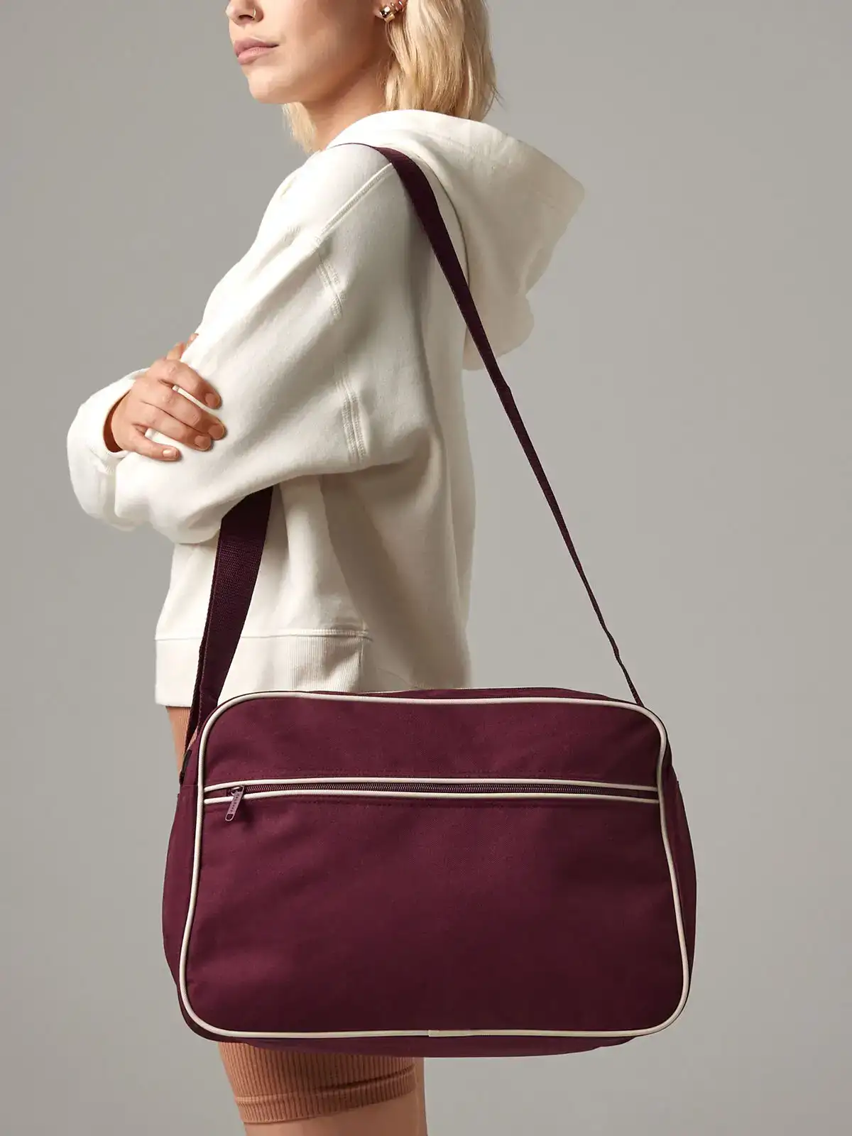100% poliestere 600d. Borsa con doppio manico e lunga tracolla regolabile. Tasca frontale con zip e piccola tasca retata interna. Etichetta removibile.