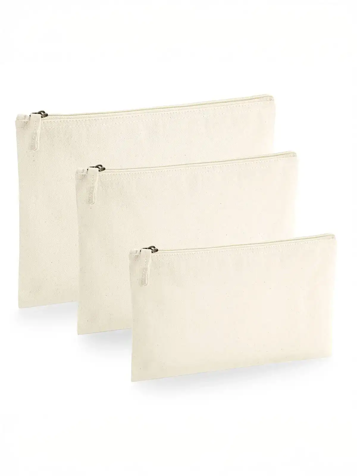 100% cotone organico GOTS. Pochette con Zip in metallo anticato per un effetto vintage. Etichetta strappabile. Dimensioni: S: 20x11,5 cm, M: 22x16 cm, L: 28x20 cm