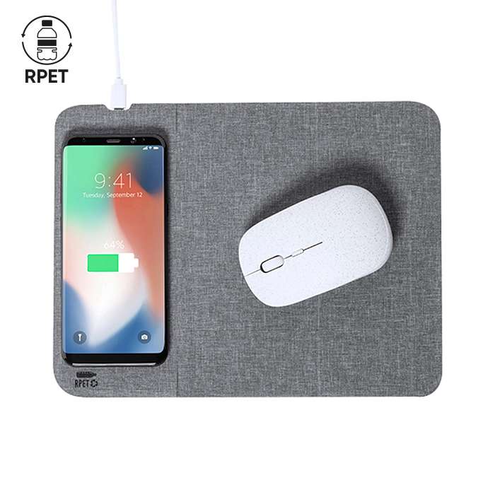 tappetino mouse wireless ; 10W ; base di ricarica /supporto smartphone antiscivolo ; cavo di ricarica incluso
