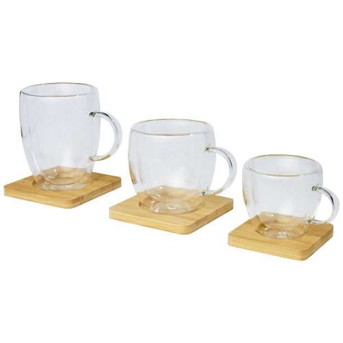 Set di 2 tazze in vetro a doppia parete da 250 ml con sottobicchiere in bambù Manti