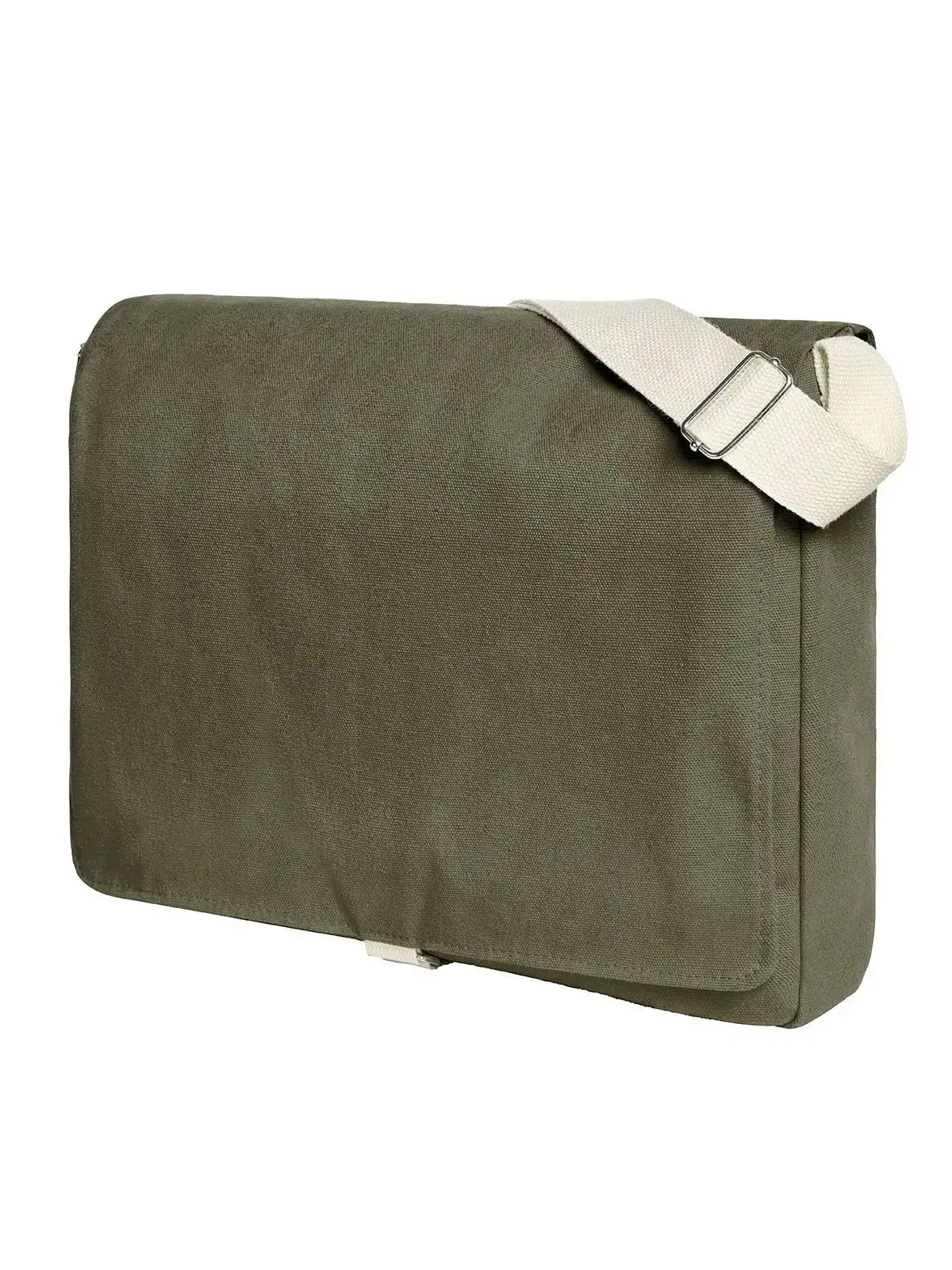 100% cotone. Borsa a tracolla con chiusura a clip, ampio scomparto principale, ideale anche per documenti A4, due tasche a inserto piatte sul lato anteriore, passante di fissaggio sul retro per l'asta del trolley, spallaccio in cotone regolabile in lunghezza. Dimensioni: 37x31x7 cm, area di stampa sul davanti: 26 x 20 cm.