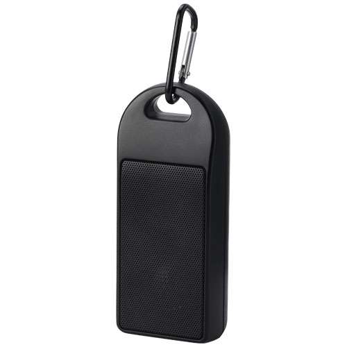 Speaker Bluetooth® da 3 W in plastica riciclata RCS per riprodurre musica, podcast, ecc. da qualsiasi dispositivo abilitato per il Bluetooth®, l'ideale per ogni occasione. Lo speaker può essere agganciato facilmente a uno zaino grazie al moschettone in dotazione ed è impermeabile con un grado di protezione IPX4. Consente fino a un'ora e mezza di utilizzo a tutto volume grazie alla batteria agli ioni di litio da 300 mAh. Il tempo di ricarica è di un'ora e mezza. La portata del Bluetooth® 5.0 è di circa 10 metri. Include un manuale d'uso, un moschettone e un cavo di ricarica da USB-A a Tipo-C da 50 cm ed è confezionato all'interno di una scatola di carta kraft riciclata al 100%.
