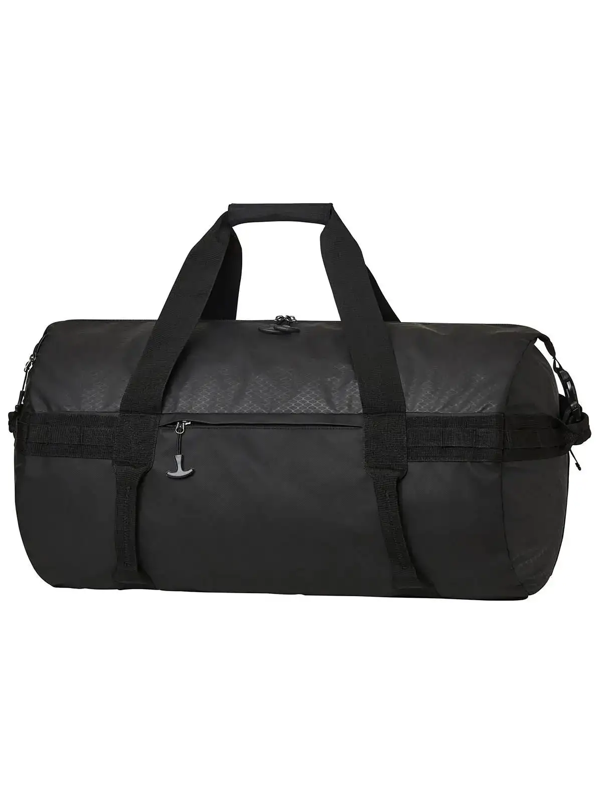 RPET 600d. rPET 600d/PU. Tutti i materiali sono confoermi alle ultime specifiche UE. Senza PVC. Comoda borsa sportiva da viaggio con funzione zaino, ampio scomparto principale con cerniera a due vie e fibbie laterali, tasca frontale e tasca laterale con zip, banda funzionale tutto attorno, vari manici, spallacci nascosti, imbottiti e regolabili in lunghezza. Dimensioni: 58 x 34 x 34 cm. Capacità: 44 lt.