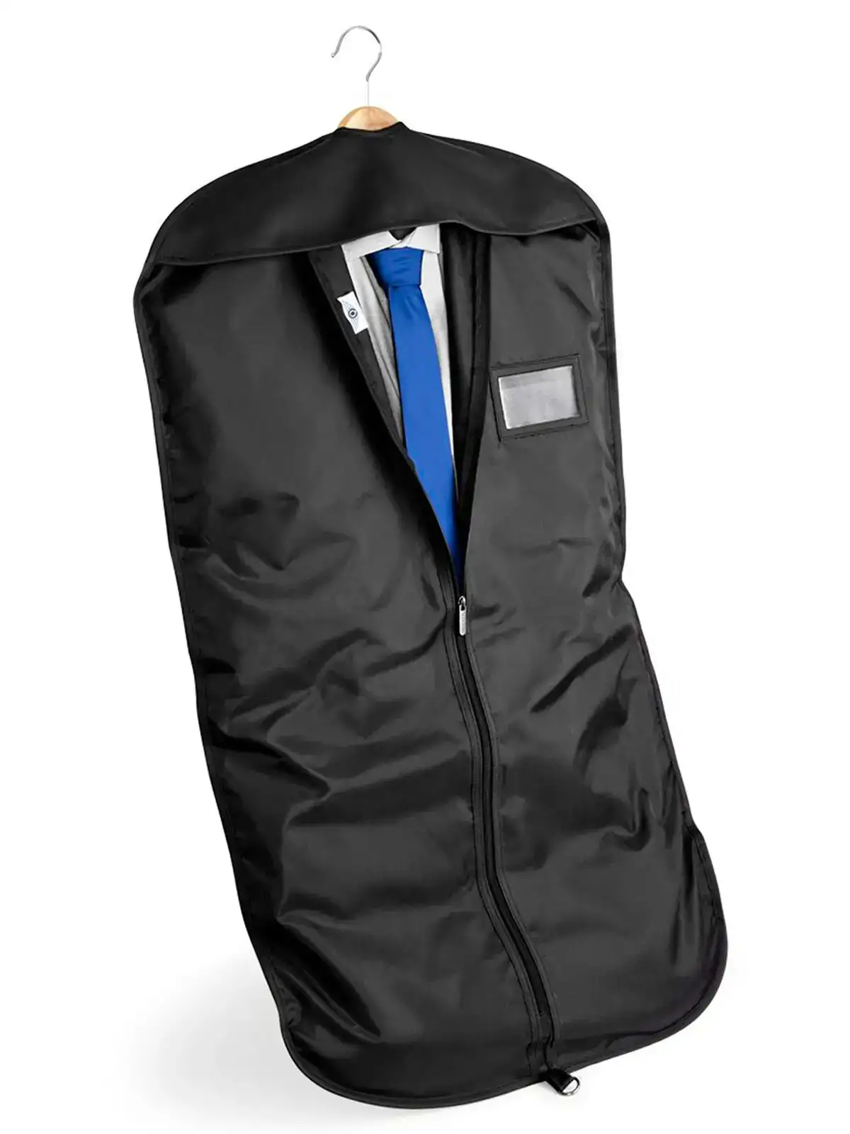 100% poliestere 210d. Porta abiti con chiusra zip su tutta la lunghezza, finestra per etichetta identificativa, gancio per gruccia. Etichetta removibile. Dimensioni: 60 x 100 cm, area stampabile: 23 x 70 cm.