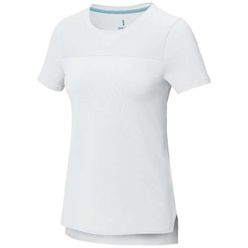 La t-shirt Borax a manica corta da donna è il mix perfetto di stile e prestazioni sportive. Realizzata con il 90% di materiali riciclati certificati GRS, mescolati con elastan per garantire elasticità e comfort, con un tessuto da 160 g/m². La finitura cool-fit aiuta a mantenersi freschi e asciutti. La certificazione GRS garantisce una catena di approvvigionamento certificata al 100%, dalle materie prime alle tecniche di stampa, rendendo questo capo una scelta più responsabile.