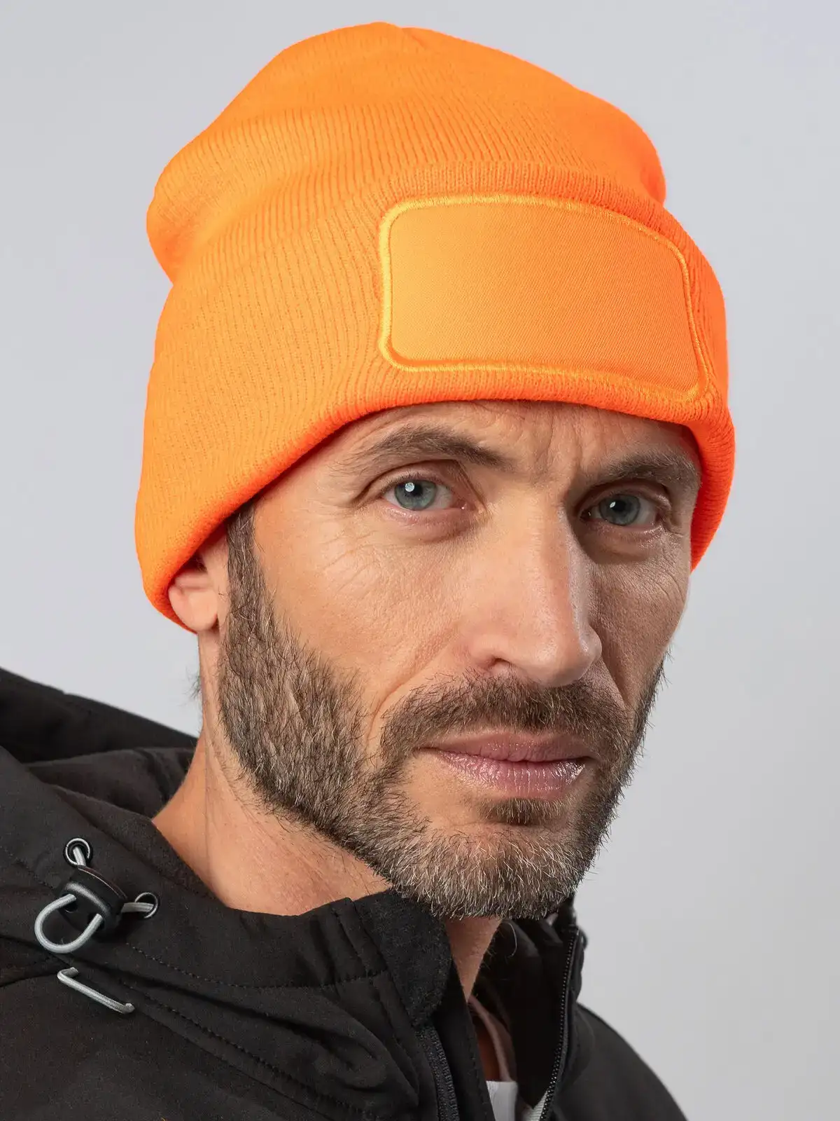 100% acrilico soft-touch. Cuffia in maglia a doppio strato perfetta per chi cerca un accessorio versatile. Dotata di una patch in twill di cotone perfetta per personalizzazioni e stampe, dimensioni 10,5 cm x 5,5 cm. Realizzata in taglia unica. Etichetta removibile.