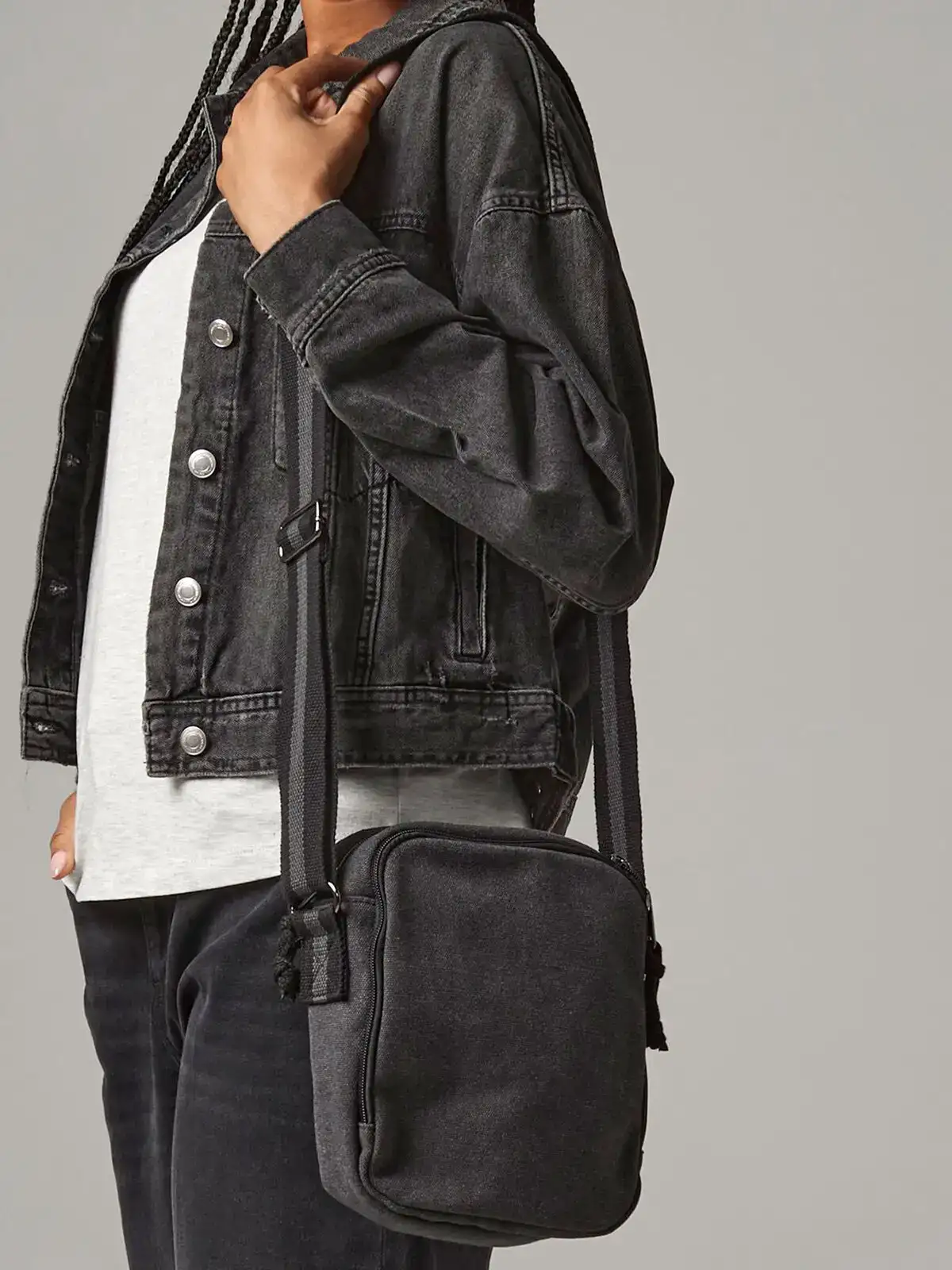 100% cotone canvas lavato. Mini borsa a tracolla con scomparto principale con chiusura a zip, cinturino bicolore, tracolla regolabile, etichetta a strappo. Dimensioni: 22.5x18.5x9 cm, capacità: 3.5 litri, area stamapabile: 15x15 cm.