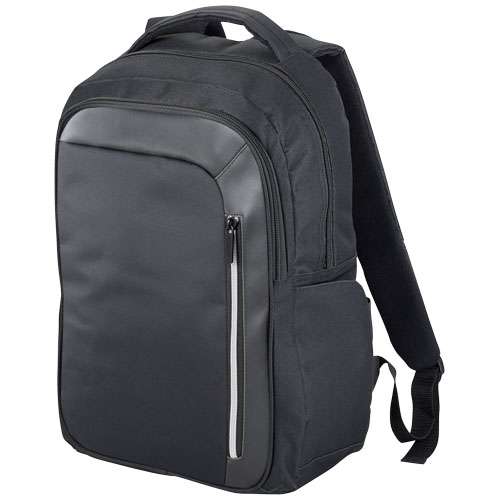 Zaino portacomputer 15" dal design contemporaneo ed elegante, con ampia tasca frontale con zip con portachiavi e tecnologia RFID per proteggere le vostre carte di credito e passaporti dai furti di identità. L'ampio scomparto principale con zip può contenere un portatile misura 15" ed è dotato anche di scomparto separato imbottito per iPad o tablet. La tasca frontale verticale con zip vi permette di tenere piccoli oggetti a portata di mano. Due tasche laterali aggiuntive, spallacci imbottiti e regolabili con inserti in fettuccia. Maniglia superiore e fascia per agganciarlo al trolley. Sono possibili piccole variazioni di colore nel prodotto effettivo a causa della natura dei coloranti dei tessuti, delle trame e della stampa.